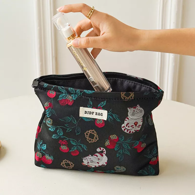 Black Cat Cherry Lady Large Cosmetic Bag – Boho Travel Makeup Organizer