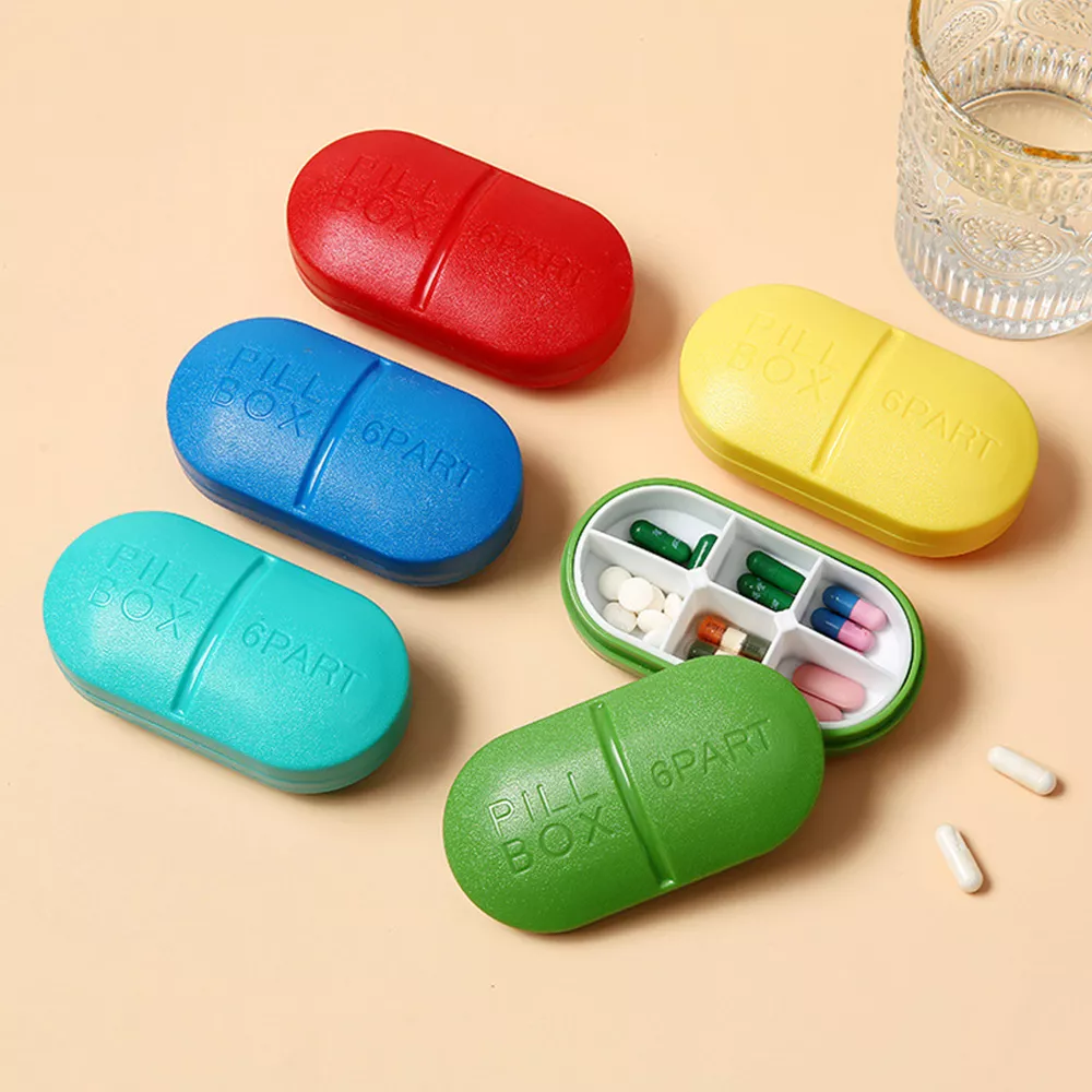 Compact 6-Compartment Pill Organizer Box for Daily Vitamins & Travel