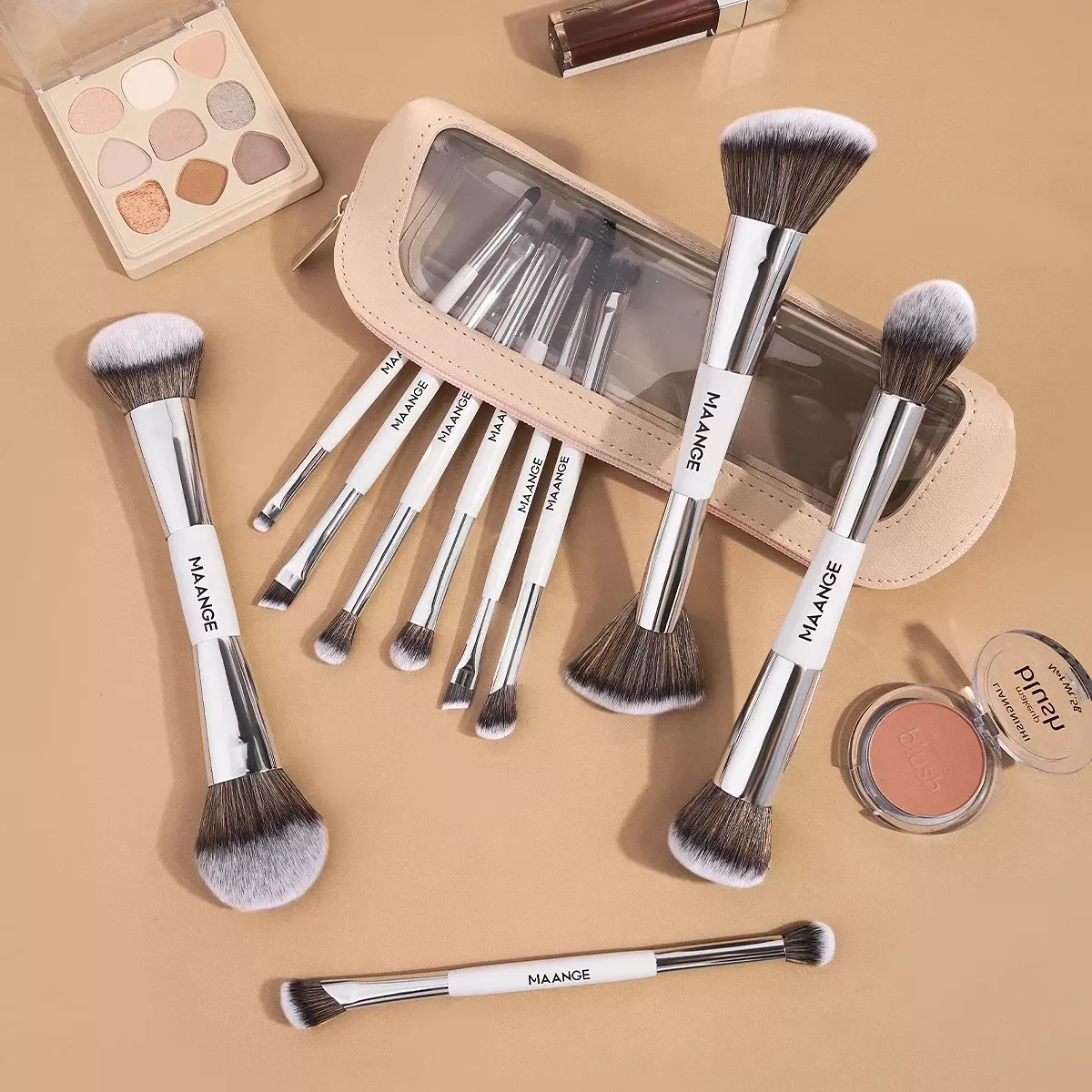 10-Piece Professional Makeup Brush Set with Travel Storage Bag
