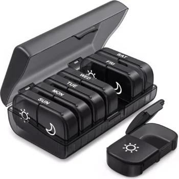 Weekly AM PM Pill Organizer with Large Compartments & Privacy Cover