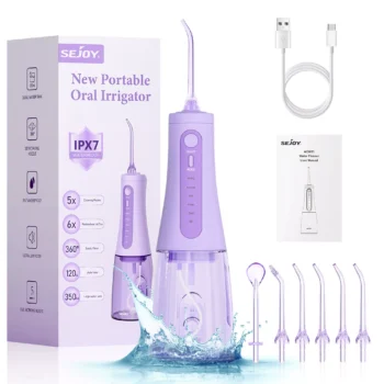 Portable Dental Water Flosser with 5 Modes & 6 Jet Tips – 350ml