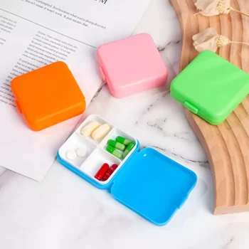 Compact 4-Grid Pill Organizer – Moisture-Proof Travel Medicine Box