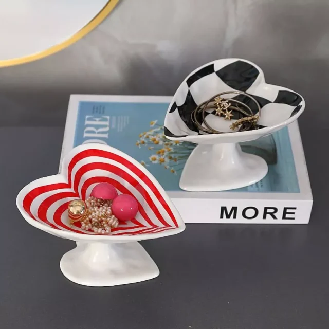 Introducing our exquisite Heart-Shaped Ceramic Tray, a versatile masterpiece designed to add a touch of sophistication and organization to your space. Crafted with love and precision, this tray serves as the perfect holder for your cherished jewelry, cosmetics, or as an elegant display for fruits and desserts. Its delicate design and modern style make it a must-have ornament for any table setting.