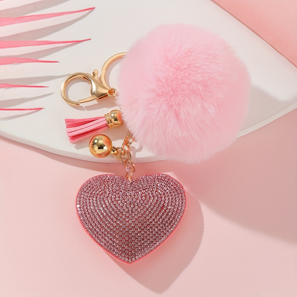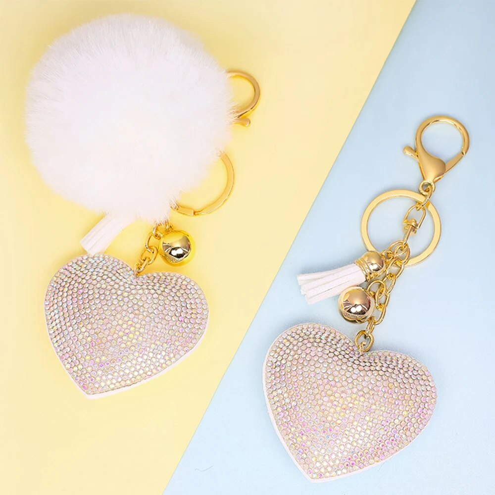 Introducing our latest addition to your accessory collection – the Heart-Shaped Rhinestone & Plush Pom Pom Keychain. A perfect fusion of elegance and whimsy, this keychain is designed to add a touch of sophistication and fun to your everyday essentials. Whether it’s adorning your keys, bag, car, or cell phone, this fashionable piece is sure to catch the eye and elevate your style.