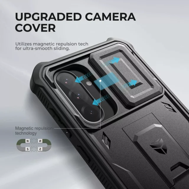 Introducing the Heavy Duty Samsung Galaxy A36-5G Case, designed to offer unparalleled protection while maintaining functionality. This robust case features a built-in magnetic slide camera cover and a folding kickstand, making it perfect for everyday use. Engineered for the 2025 Samsung Galaxy A36-5G, this case combines style and heavy-duty defense to keep your phone safe from drops, scratches, and spills.