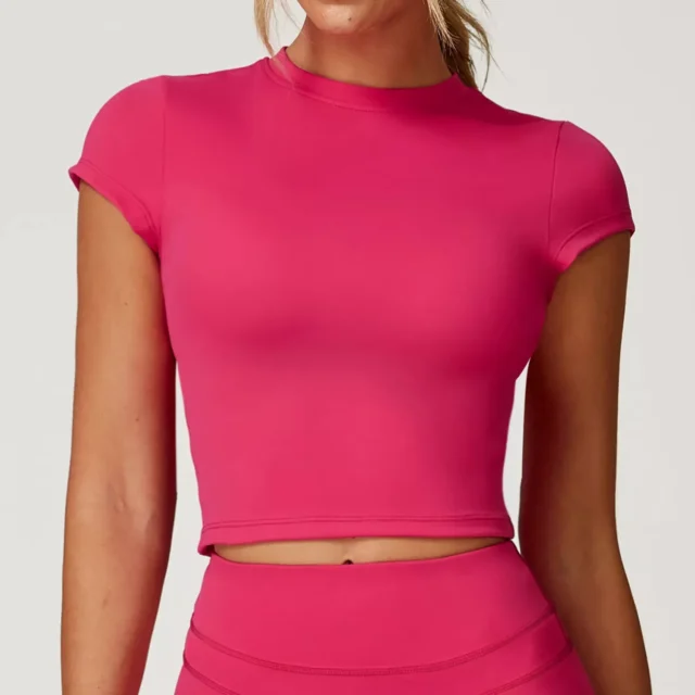 Designed for women who love to stay active, this sports bra top is perfect for every season and every kind of workout. From yoga and pilates to running, cycling, hiking, and even high-intensity training, it offers the right amount of compression and flexibility. Its seamless design gives a sleek, flattering look while ensuring maximum comfort. The short sleeve style makes it easy to layer or wear on its own, giving you a sporty yet stylish vibe.