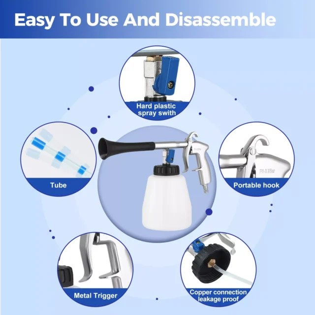 Unlike standard interior cleaning tools, this compressed air-powered gun transforms the way you clean. It’s best used when you want to give your car a truly detailed wash — whether you’re preparing for a road trip, cleaning up after the kids, or doing weekend maintenance. Its ability to penetrate deep into narrow crevices sets it apart from traditional brushes and cloths.