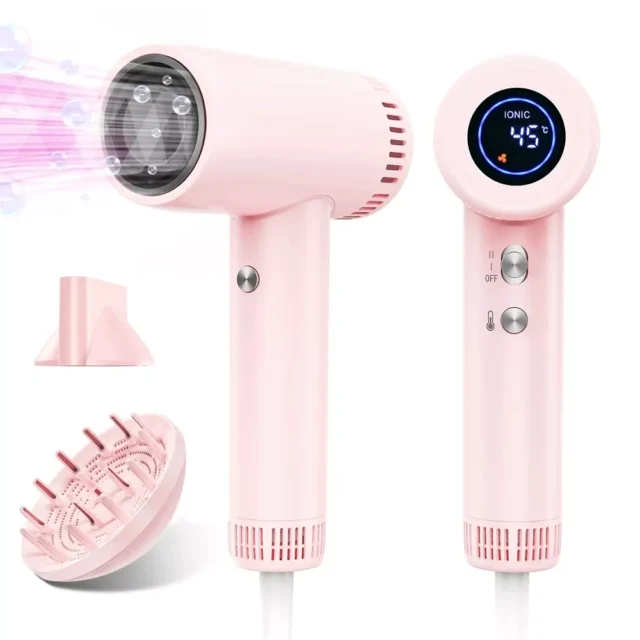 Transform your daily hair routine with this high-speed ionic hair dryer designed for professional salon-quality results at home. Powered by a 160,000 RPM brushless motor and 36 m/s wind speed, it dries hair up to 5X faster than traditional dryers. Whether you’re rushing in the morning or styling for a night out, this lightweight dryer ensures fast, efficient, and damage-free drying for every hair type.