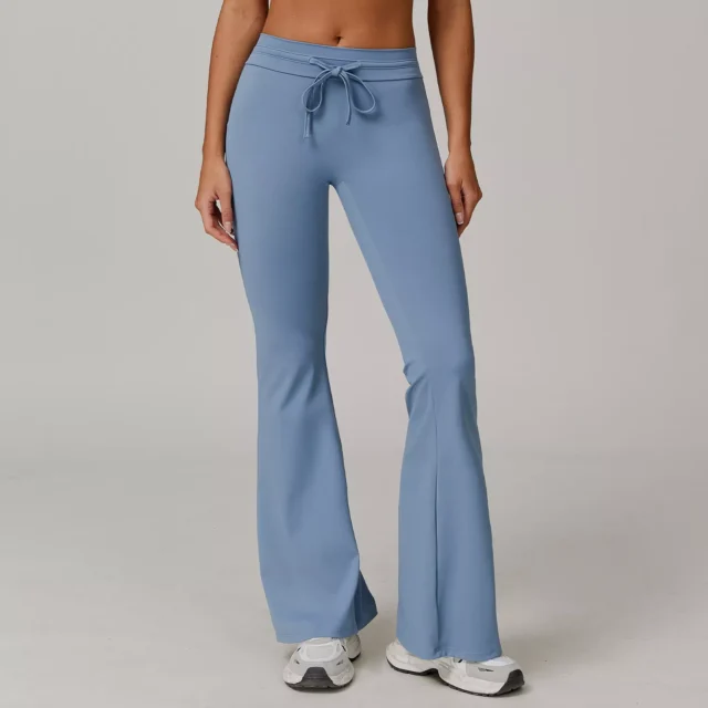 Crafted from a premium blend of 78% polyester and 22% spandex, these leggings are incredibly soft, breathable, and feature excellent stretch recovery. The high-rise design with an adjustable drawstring hugs your waist comfortably while enhancing your natural silhouette. The flare-leg cut adds a fashionable touch, creating a lengthening effect that’s flattering on every body type.