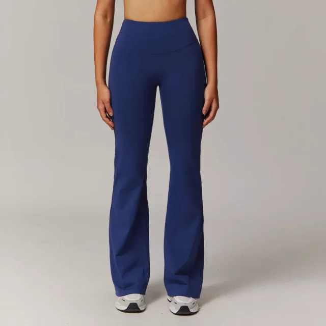 Crafted with a premium blend of 78% polyester and 22% spandex, these pants are built for stretch, durability, and breathability. The high elasticity hugs your body gently while allowing full freedom of movement. The fabric feels smooth on the skin and wicks away sweat, keeping you cool and dry throughout any activity. The elastic waistband offers a secure fit without digging in, and the flared leg adds a trendy twist to classic gym leggings.