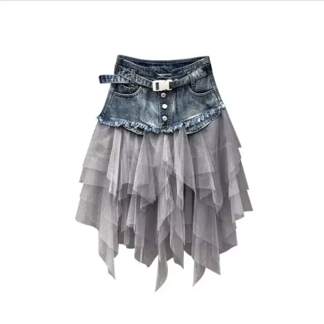 Step into the sun with an edge in our latest High Waist Gothic Punk Tulle & Denim Skirt. This piece is a symphony of unconventional fashion, blending the hardy soul of denim with the ethereal whisper of tulle. It’s more than a skirt—it’s a fashion statement poised to elevate your summer wardrobe with a daring twist. Ideal for middle-aged women who are young at heart, this skirt defies expectations and embraces the bold.
