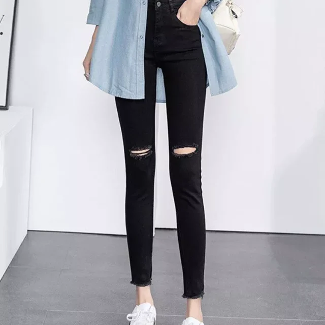 Meet your new wardrobe staple that redefines casual sophistication – our High-Waist Skinny Jeans designed to add a touch of edginess to your everyday style. Crafted for the woman who embraces boldness and simplicity, these jeans are the epitome of streetwear chic, perfect for any season. With their unique knee-ripped detail and flattering high waist, these ankle-length pants are a fashionable nod to the free-spirited vibe of summer 2022.