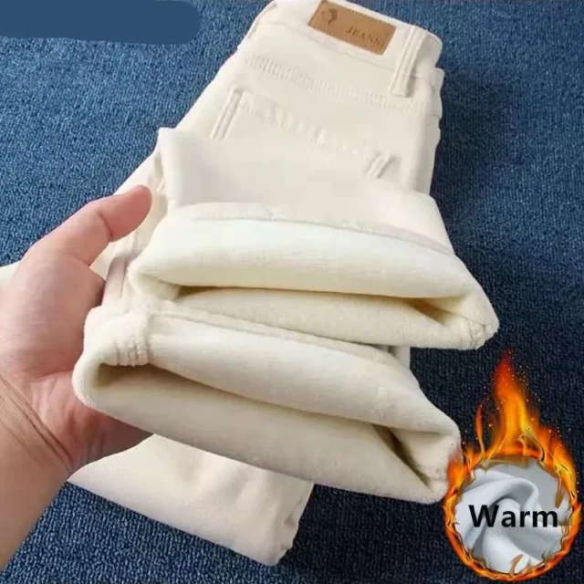 Aside from their insulating velvet lining and sophisticated high-waist design, these jeans are crafted to provide a comfortable, yet flattering fit. The meticulous construction and attention to detail ensure they maintain their shape wear after wear, making them a lasting addition to your winter wardrobe.