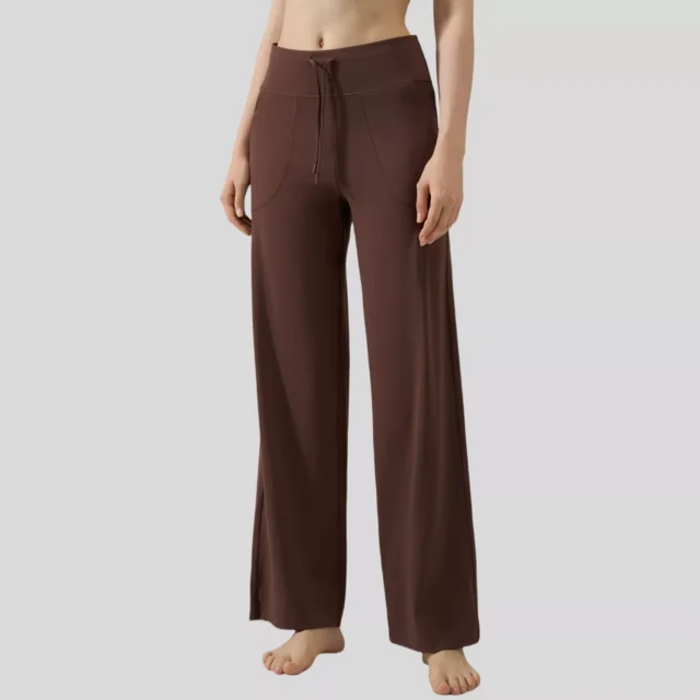 High Waist Wide Leg Yoga Pants for Women – Drawstring Fitness & Running Trousers