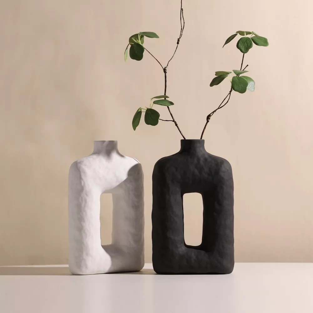Modern Black and White Openwork Ceramic Vase