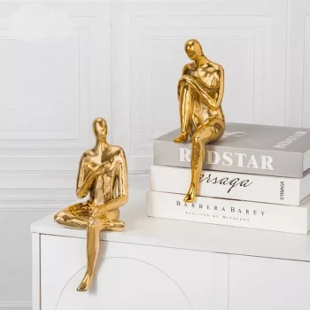 Golden Man Reading Sculpture – Ceramic Bookshelf Decoration Figurine