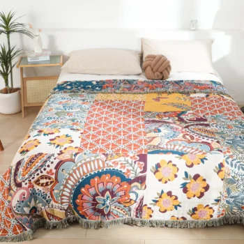 Luxury Cotton Towel Blanket with Tassels – 79″ x 91″ Soft Bed & Sofa Cover