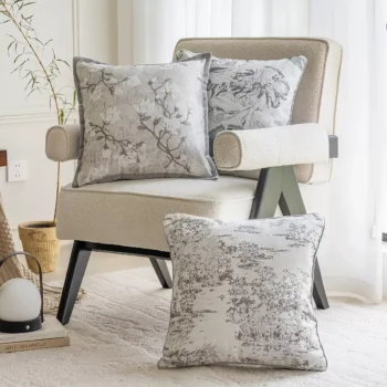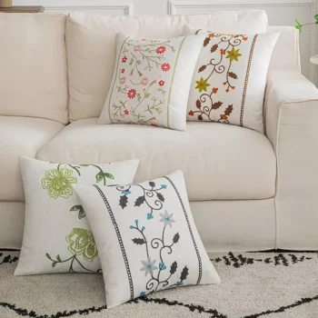Embroidery Jacquard Floral Leaf Pattern Cotton Linen Pillowcase – Rustic Decorative Throw Pillow Case Cushion Cover