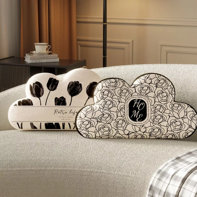French Printed Cloud Pillow for Living Room – Light Luxury Decorative Cushion