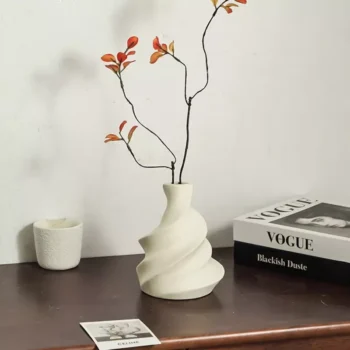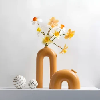 Orange Ceramic Arch Vase – Modern Geometric Semicircle Floral Decor