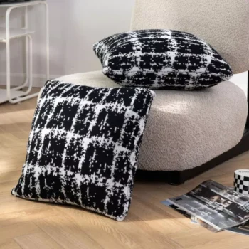 Luxury Wool Blend Knitted Plaid Pillow Cover, Black and White, 18×18 Inch