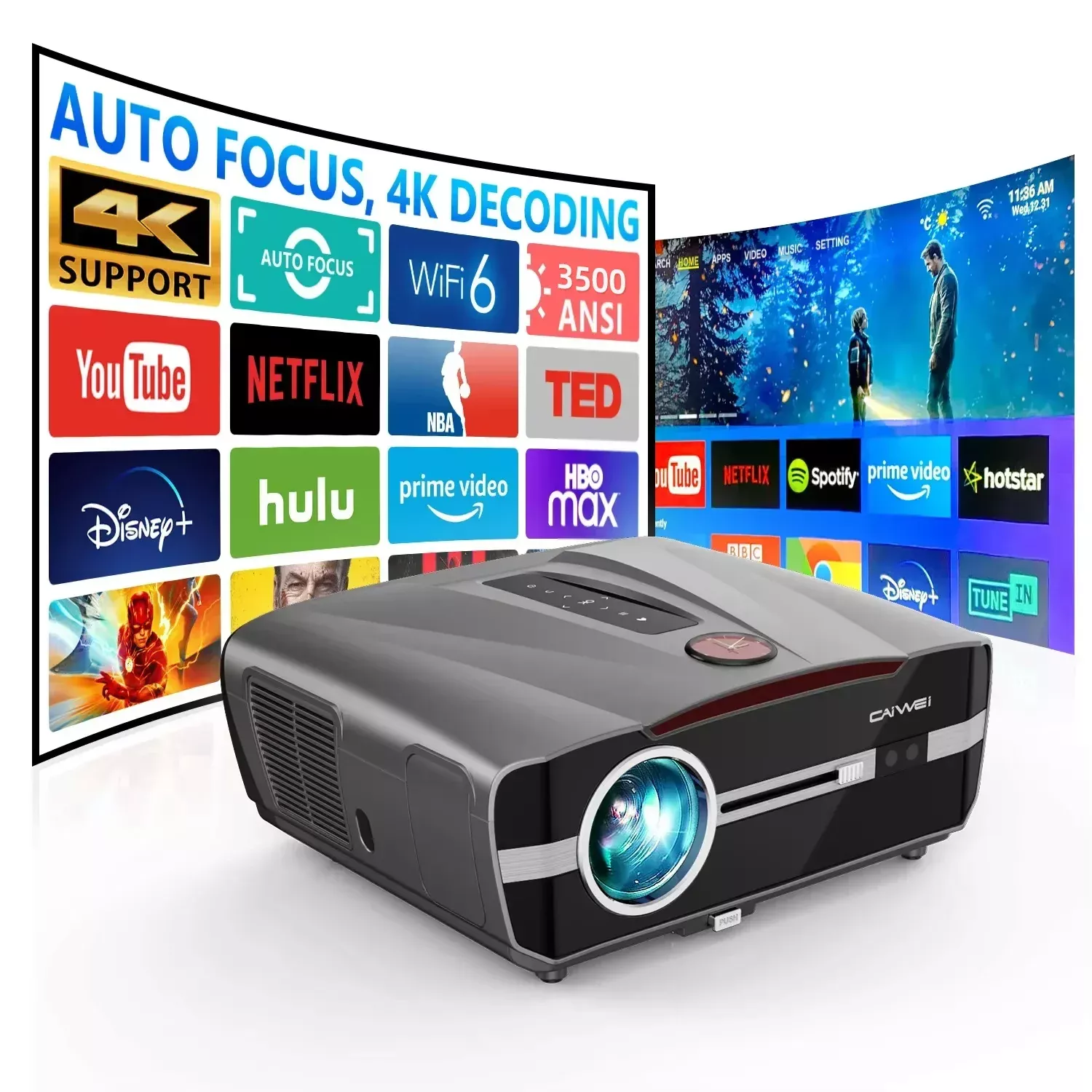 4K Smart Home Theater Projector with Auto Focus and WiFi