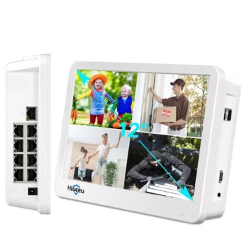 8CH 4K 8MP PoE NVR with 12″ LCD Monitor for IP Security Cameras