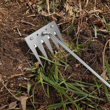 Stainless Steel Long Handle Weed Puller Garden Tool – 5-Tooth Weeder Rake