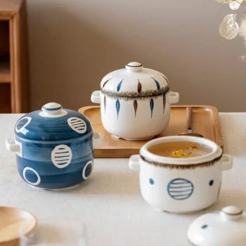 Ceramic Stew Pot 500ML Japanese Egg Bowl – Handmade Soup & Stew Cup