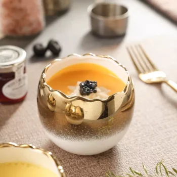 Egg-Shaped Gradient Ceramic Dessert Bowl with Gold Inlay