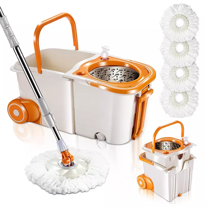 Spin Mop and Bucket System with 4 Microfiber Pads – Efficient Floor Cleaning Set