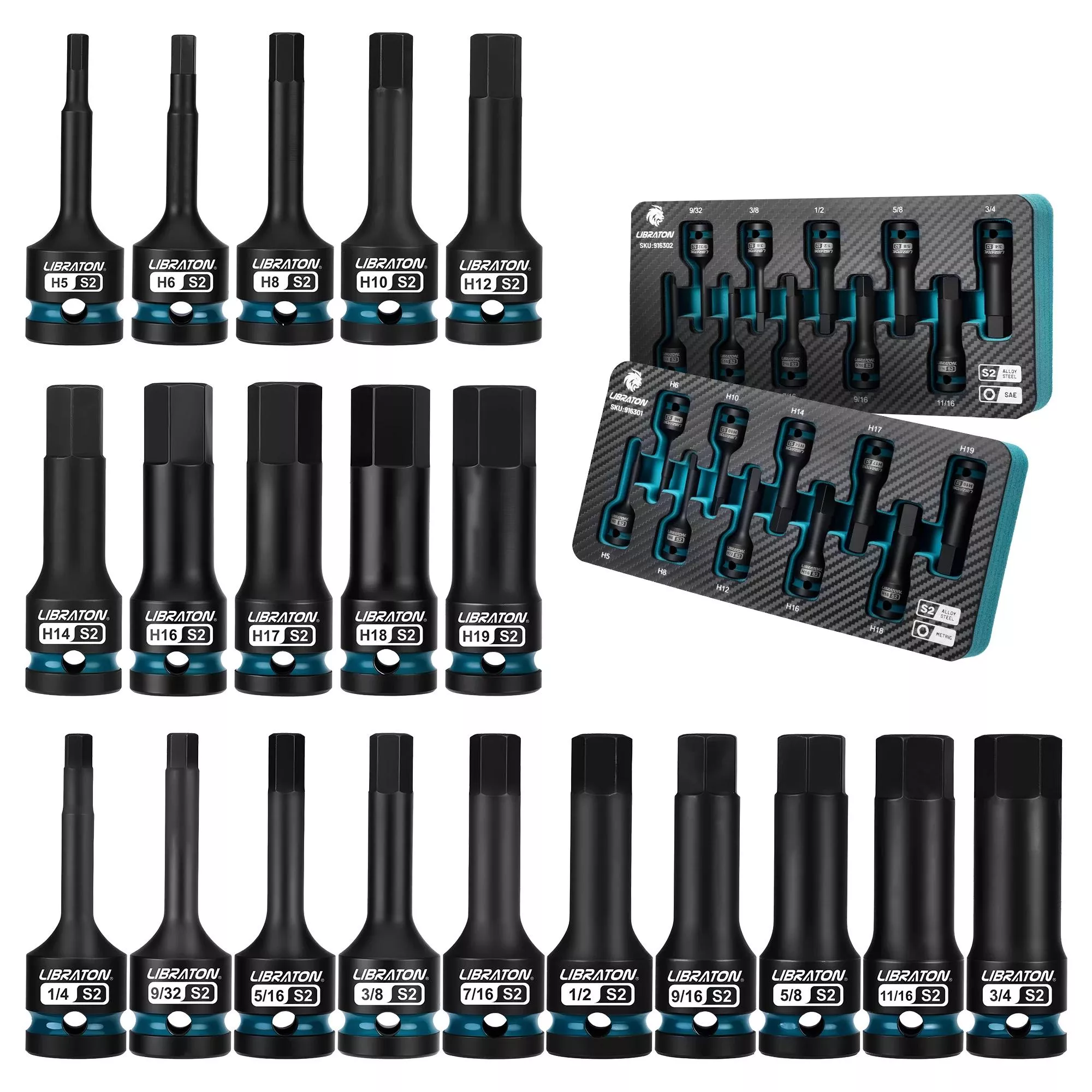 20-Piece Impact Hex Bit Socket Set SAE & Metric High-Torque Sockets
