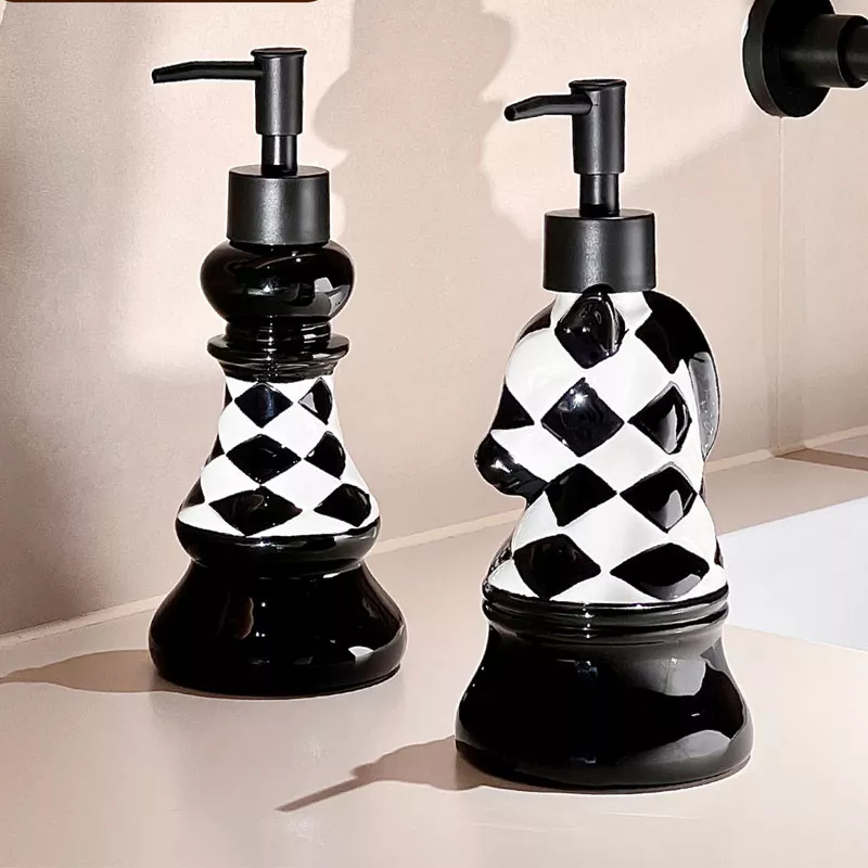 Chessboard Ceramic Soap Dispenser for Bathroom & Kitchen