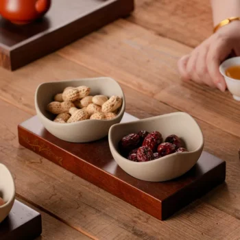 2/3-Piece Ceramic Snack Bowl Set with Acacia Wood Tray