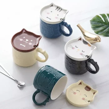 Cute Japanese Cartoon Cat Ceramic Coffee Mug with Lid