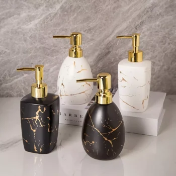 Luxury Nordic Marble Ceramic Soap & Lotion Dispenser with Golden Pump 400ml