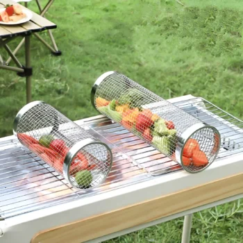 Stainless Steel Rolling Grill Basket for BBQ Vegetables & Meat