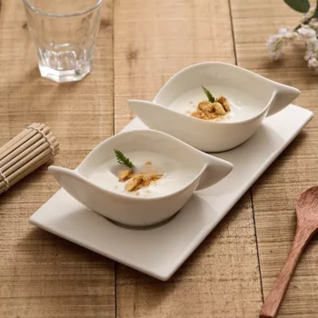 Elegant White Porcelain Snack Plate with Two Compartments for Serving