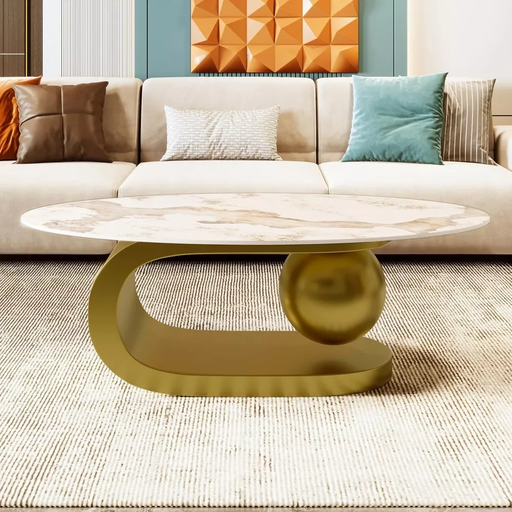 47.2″ Oval Marble Look Coffee Table with Gold Stainless Steel Base
