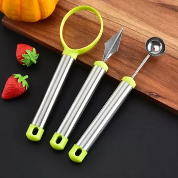Stainless Steel Fruit Prep Tool Set – Corer, Scoop & Carving Knife