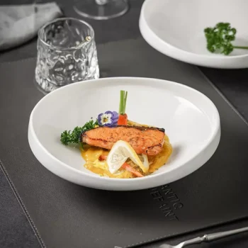 Elegant Pure White Ceramic Serving Plate – Shallow Round Tableware Bowl