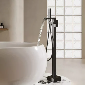 Luxury Black Brass Floor-Standing Faucet with Waterfall Outlet for Bathtub