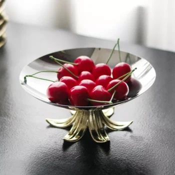 Golden Leaf Stainless Steel Fruit Platter – High-Legged Candy Bowl