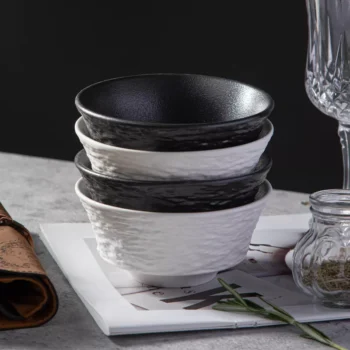 4.5″ Japanese Stone Rice Bowl – Black & White Frosted Tableware