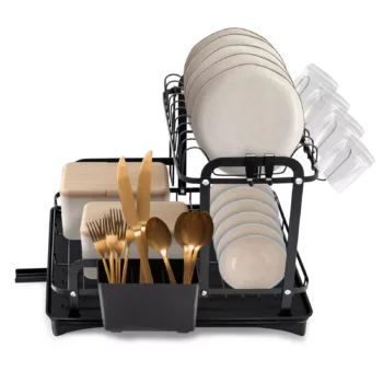 2-Tier Dish Drying Rack – Compact Kitchen Organizer with Cover