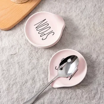 Pink Ceramic Spoon Rest – Cute Coffee Bar Holder with Letter Design (1 PCS)