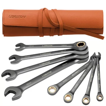 8-Piece Metric Ratcheting Wrench Set with Leather Roll-Up Pouch
