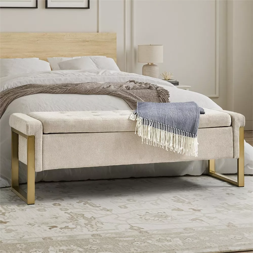 Upholstered Storage Ottoman Bench with Gold Metal Legs for Bedroom & Hallway