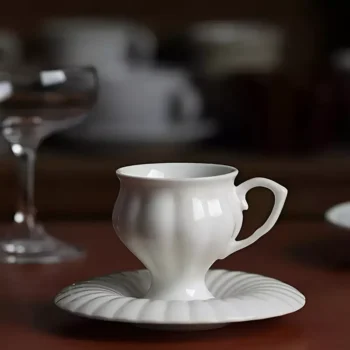 Elegant French Retro Porcelain Coffee Cup with Saucer – White Tall Mug