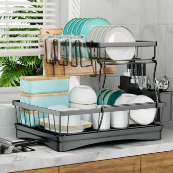 Large 2-Tier Metal Dish Drying Rack for Kitchen Countertops